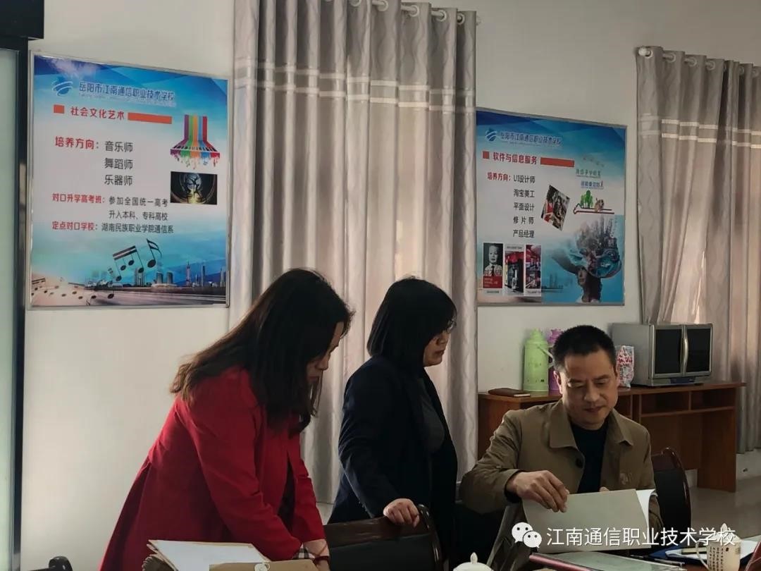 3月22日上午,岳陽(yáng)市教體局領(lǐng)導(dǎo)李像謙科長(zhǎng)一行蒞臨我校進(jìn)行2021年春季教學(xué)視導(dǎo)工作。視導(dǎo)組成員就常規(guī)教育教學(xué)工作專業(yè)辦學(xué)條件,專業(yè)教學(xué)文件,專業(yè)教學(xué)團(tuán)隊(duì)、實(shí)習(xí)與就業(yè)情況、專業(yè)建設(shè)實(shí)效等六個(gè)方面全面進(jìn)行了檢查視導(dǎo)。 肯定我們工作做的細(xì)致、扎實(shí),有實(shí)效,專業(yè)有特色,學(xué)生有所成。同時(shí)交待了下階段要做好的六件事: